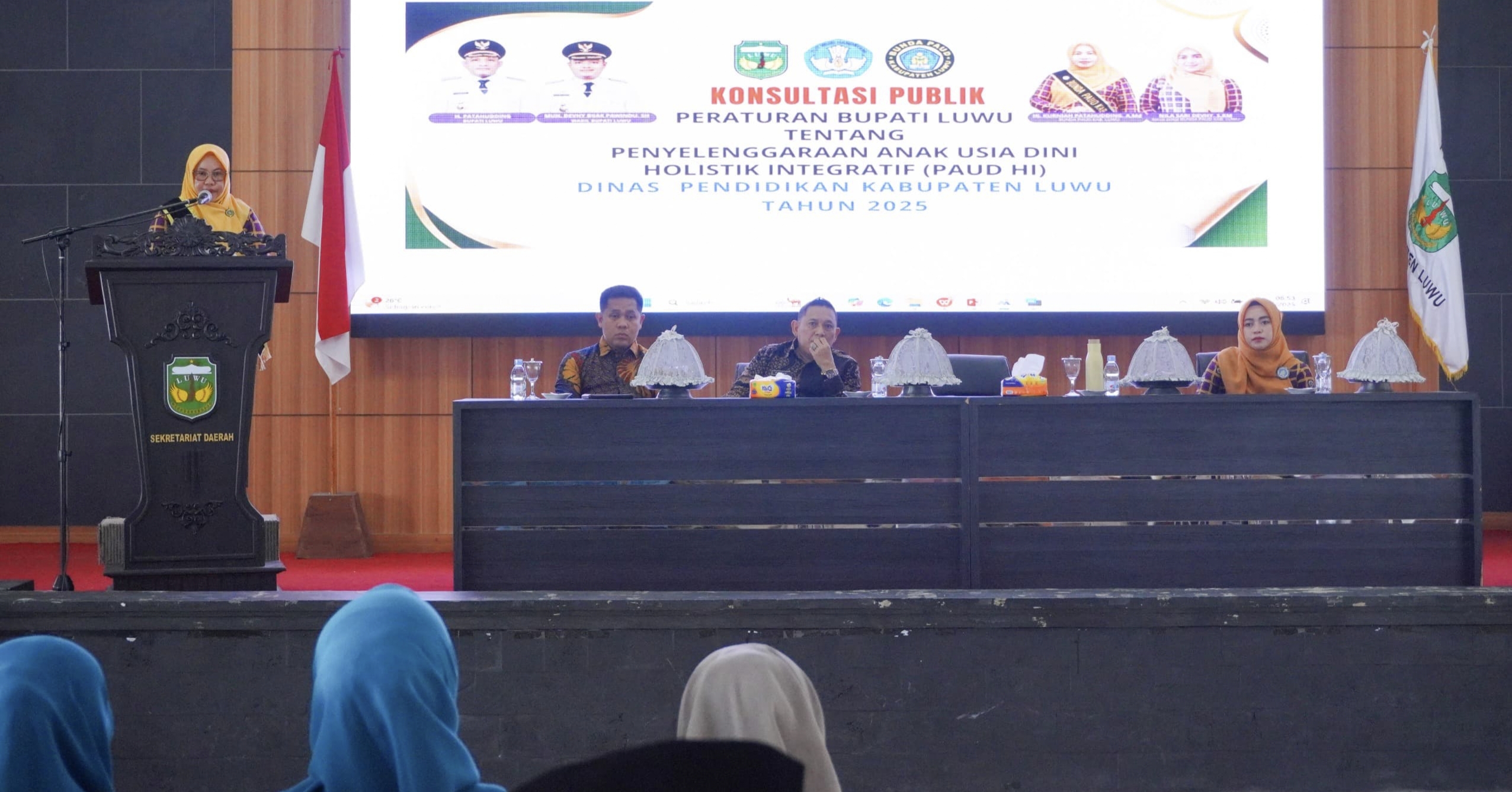 LUWU — Pemerintah Kabupaten Luwu melalui Dinas Pendidikan menggelar Konsultasi Publik Penyelenggaraan Pendidikan Anak Usia Dini Holistik Integratif (PAUD HI) di Gedung Andi Kambo, Kamis (30/10/2025).