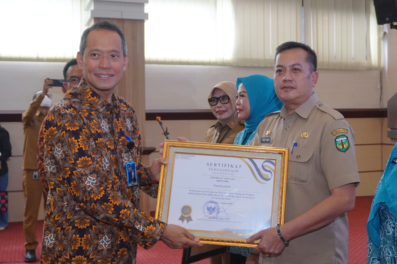 LUWU – Pemerintah Kabupaten Luwu menerima Sertifikat Penghargaan atas dukungan dan komitmen dalam pelaksanaan Program Makan Bergizi Gratis (MBG) bagi Sasaran 3B (Ibu Hamil, Ibu Menyusui, dan Balita Non Paud) dari Wihaji, Menteri Kependudukan dan Pembangunan Keluarga/Kepala BKKBN.
